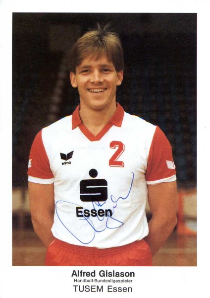 | Uwe Schwenker und Alfred Gislason mit dem THW-Trikot. | Uwe Schwenker und Alfred Gislason bei der Vertragsunterzeichnung. | WM 2007: Alfred Gislason. | WM 2007: Alfred Gislason. | |||
