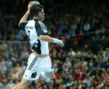 | Stefan Kneer beim direkten Freiwurf. | Stefan Kneer beim direkten Freiwurf. | Kim Andersson. | Kim Andersson wird attackiert. | |||