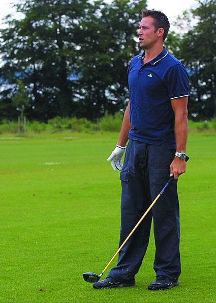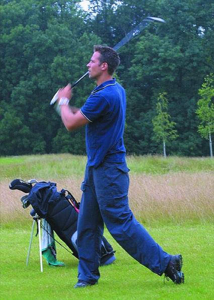| Golfturnier 2002: Morten konzentriert. | Golfturnier 2002: Geht der rein? | Golfturnier 2002: Och nee! | Golfturnier 2002: Nochmal! | |||