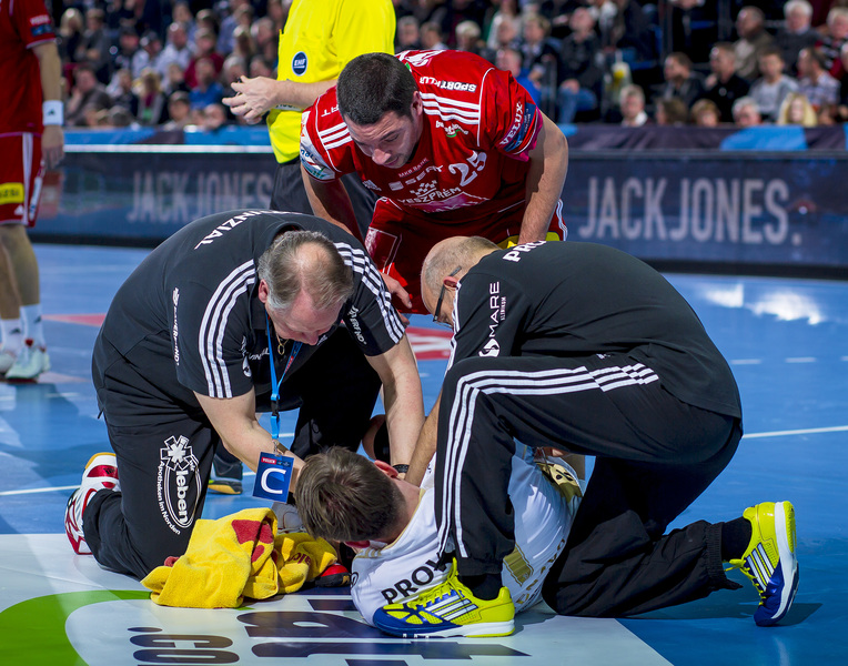 | Christian Zeitz verletzt. | Christian Zeitz verletzt. | Daniel Narcisse und Tobias Karlsson. | Momir Ilic verletzt. | |||