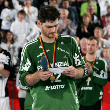| Der neue DHB-Pokal. | Der neue DHB-Pokal. | Abschied von Stefan Lövgren: Die Weltauswahl. | Henning Fritz und Wolfgang Schwenke. | |||
