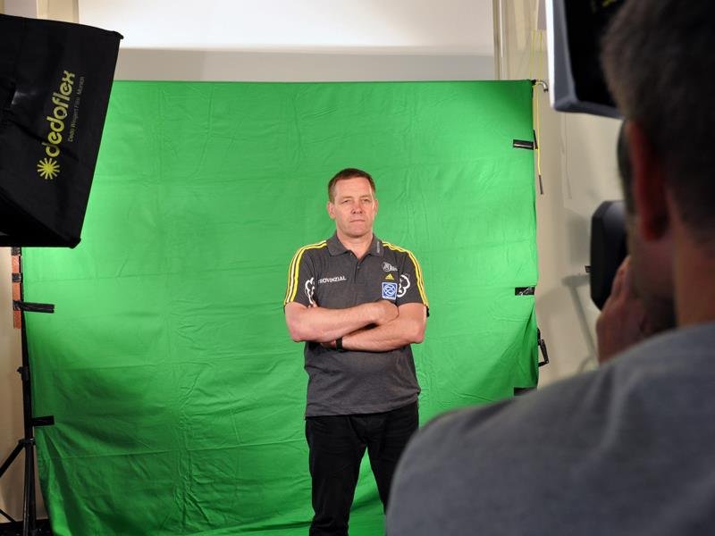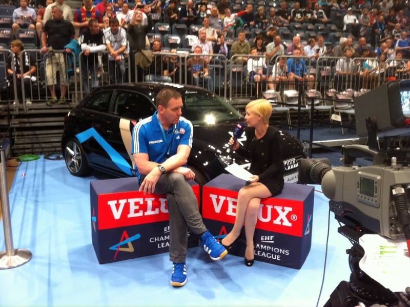 | Alfred Gislason im Interview. | Fotoshooting für das VELUX EHF Champions League Final4. | Auszeit. | Diskussionen. | |||