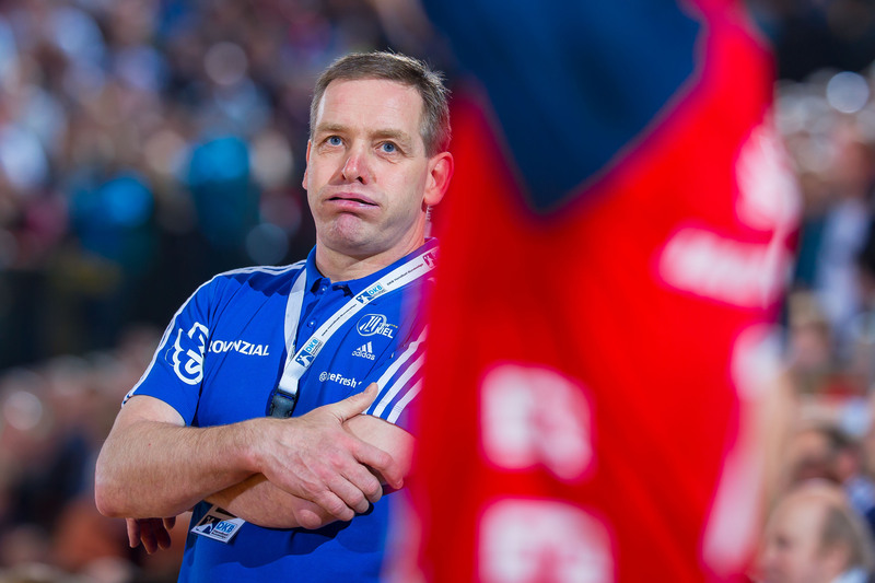 | Alfred Gislason. | Celjes Sportdirektor Roman Pungartnik und THW-Trainer Alfred Gislason. | Alfred Gislason. | Alfred Gislason. | |||