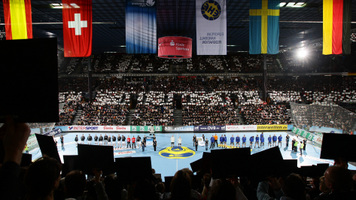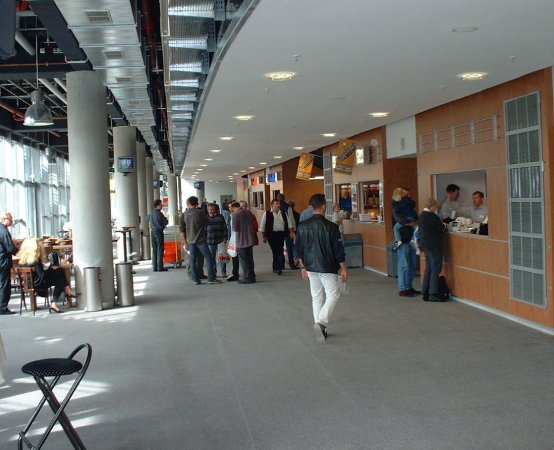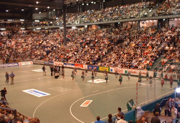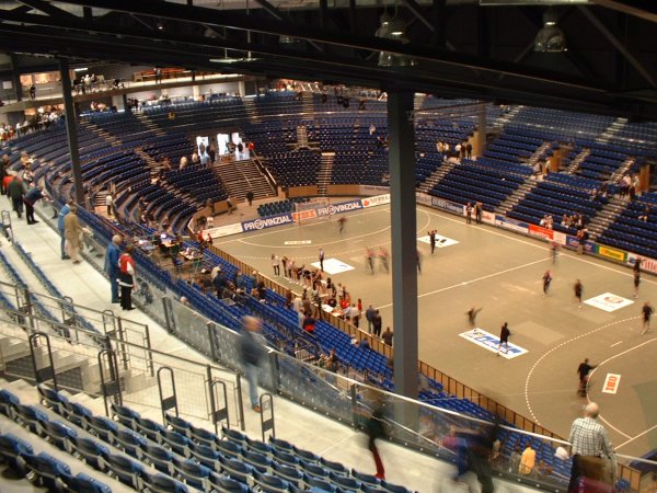 | Die riesige Arena. | Immer wieder toll: Die Zebras laufen ein. | Einlauf in die neue Halle. Große Version. | Die Fans vor der neuen Halle. | |||