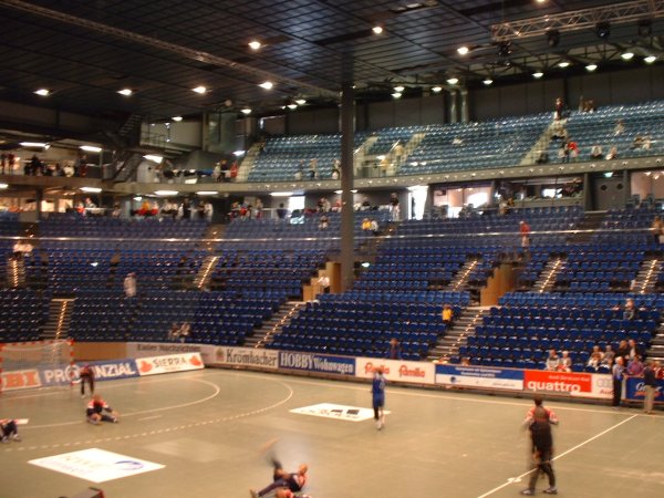 | Die Ostseehalle. | Der Einlauf. | Der Einlauf. | Die Ostseehalle war gegen Obernburg gut gefüllt. | |||