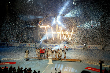 | Meister! | Vor dem Anwurf. | THW-Fans. | Wieder tolle Stimmung in Kiel. | |||