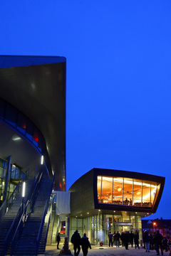 | Gleich geht's los. | Die neue Videowall in der Halle. | Die "neue" Ostseehalle. | Die Vorderfront. | |||