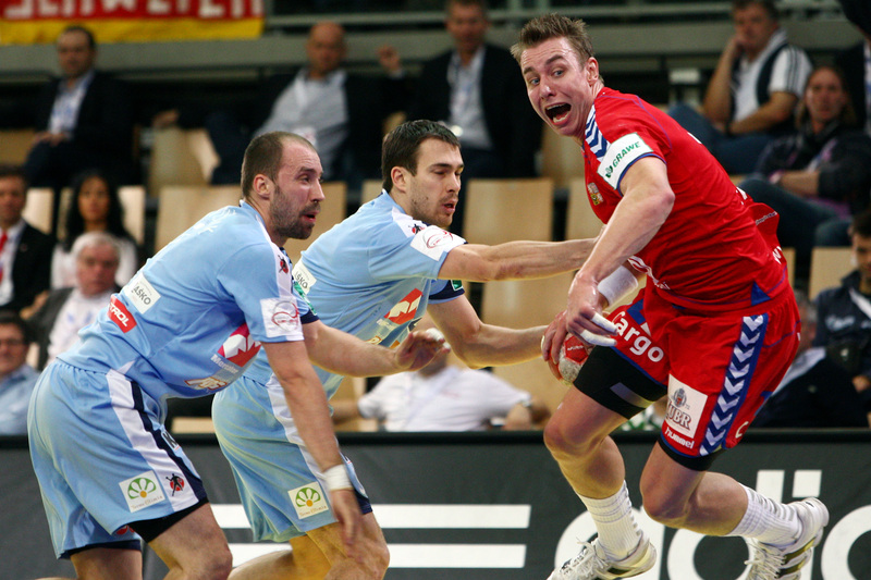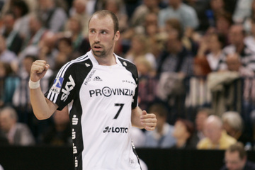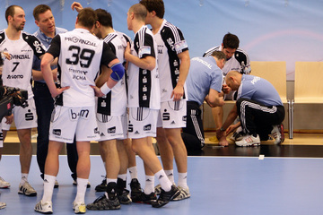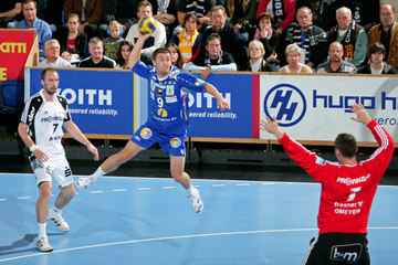 | Alen Muratovic wird gestoppt. | Vid Kavticnik. | Jubel nach dem Sieg in Flensburg. | Vid Kavticnik. | |||