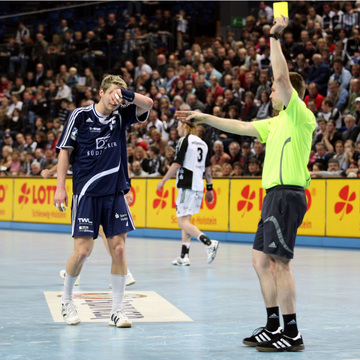 | Kampf am Kreis. | Gelb für Nico Kibat. | Nico wirft. | Nico steigt. | |||