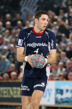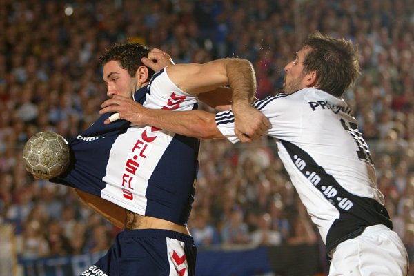 | 2. Halbfinale: Flensburg gegen Nordhorn: Flensburgs Blazenko Lackovic wird von Holger Glandorf gestoppt. Rechts klammert Iwan Ursic Flensburgs Kreisläufer Johnny Jensen. | 2. Halbfinale: Flensburger Jubel nach dem Schlussspfiff. Von links: Lars Christiansen, Andrej Klimovets, Blazenko Lackovic, Joachim Boldsen und Dan Beutler. | Montpelliers Nikola Karabatic am Ball. Im Vordergrund Blazenko Lackovic. | Blazenko Lackovic. | |||