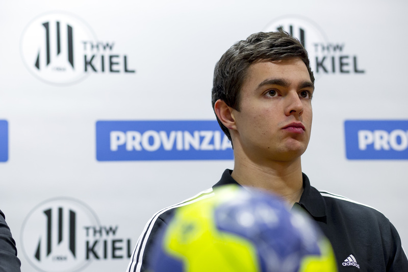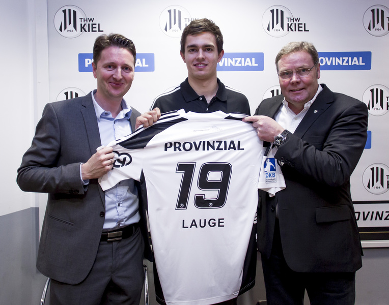 | Pressekonferenz zur Verpflichtung von Rasmus Lauge. | Spieleragent Christian Henriksen, Rasmus Lauge und Klaus Elwardt. | Klaus Elwardt, Rasmus Lauge und Alfred Gislason. | Rasmus Lauge. | |||