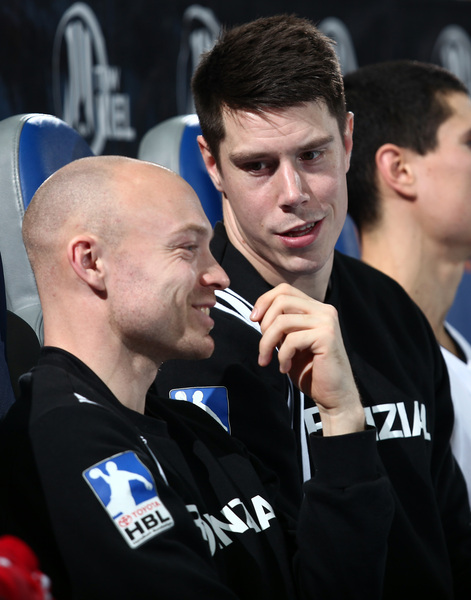 | Die Kieler Bank. | Aron Palmarsson und Henrik Lundström. | Spielszene. | Henrik Lundström. | |||