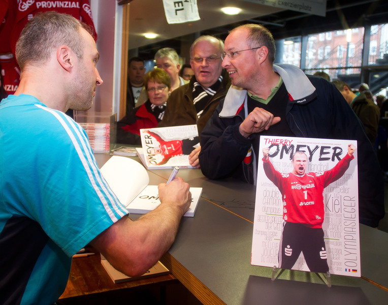 | Thierry Omeyer. | Freude. | Thierry Omeyer signiert sein Buch. | Thierry Omeyer signiert sein Buch. | |||