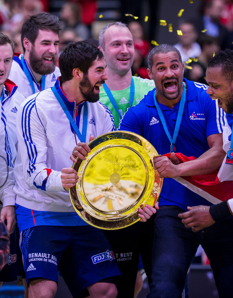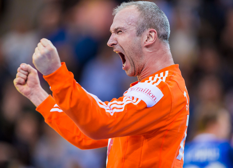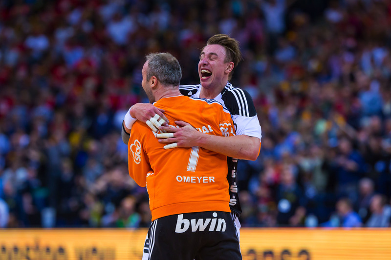 | Thierry Omeyer. | Enttäuschung. | Fotoshooting für das VELUX EHF Champions League Final4. | Filip Jicha. | |||