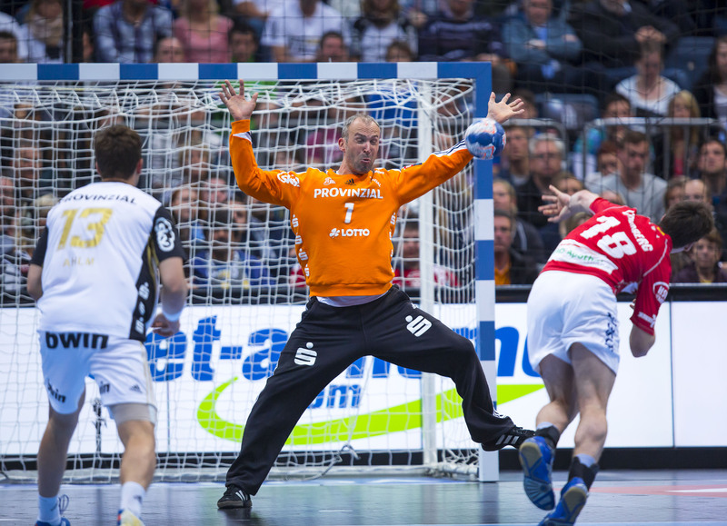 | Thierry Omeyer gegen Hans Lindberg. | Spielszene. | Vor dem Spiel. | Thierry Omeyer. | |||