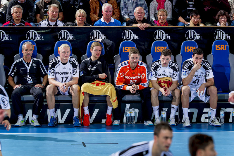 | Dank an die mitgereisten Fans. | Die Kieler Bank. | Jubel nach dem Sieg. | Andreas Palicka. | |||