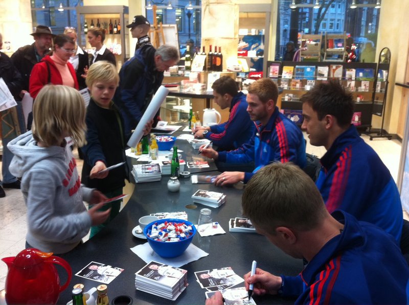 | Mauer. | Die Kieler Bank. | Autogrammzeit. | Dank an die Fans. | |||
