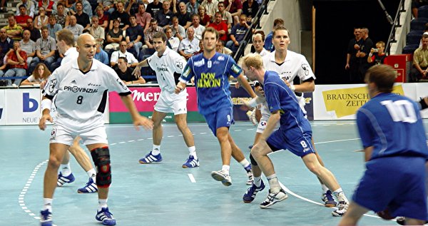 | Johan Pettersson. | Porträt 2003/2004 Johan Pettersson. | Handball-Bundesliga-Cup 2003. | Handball-Bundesliga-Cup 2003: Demetrio Lozano - im Hintergrund Pungartnik und Preiß. | |||