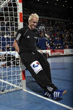 | Johan Pettersson. | Johan Pettersson. | Johan Pettersson vor dem Spiel. | Pettersson wirft, Jacobsen geht in Deckung. | |||