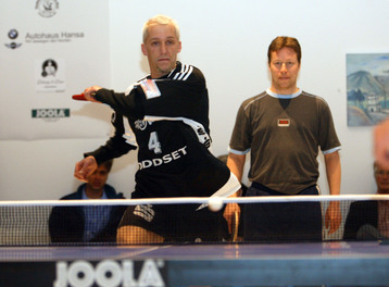 | Jörg Rosskopf und Dr. Dirk Luckow trafen in der Kunsthalle Kiel auf Jan-Ove Waldner und Johan Petersson. | Johan Pettersson. | Johan Pettersson. | Johan Pettersson läuft Michael Kraus auf und davon. | |||