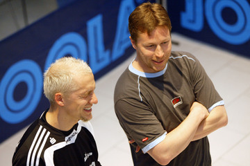| THW wird in Flensburg Meister: Jubel nach dem Abpfiff. | THW wird in Flensburg Meister: Jubel mit der Schale. | THW wird in Flensburg Meister: Jubel mit der Schale. | EHF-Pokal-Finale 2002, Rückspiel: Johan läßt sichs gut gehen. | |||