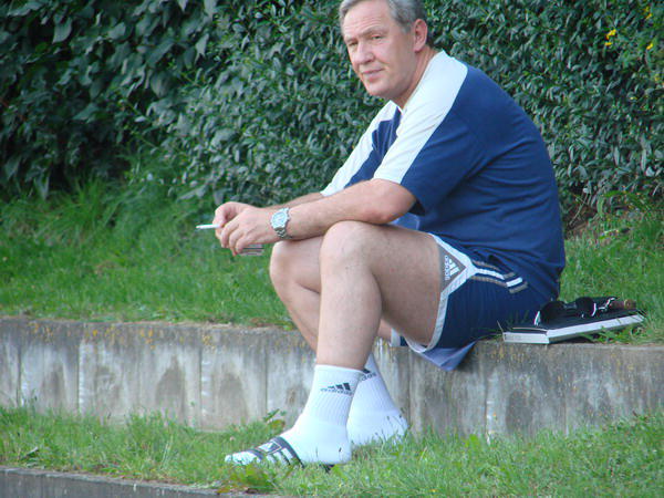 | Nach dem Spiel entspannt auf der Bank. | Nach dem Spiel entspannt auf der Bank. | Der Coach. | Auszeit. | |||