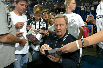 | Noka und Mirjana Serdarusic auf der Tribüne. | Noka und Mirjana Serdarusic. | Kiels Oberbürgermeisterin Angelika Volquartz und THW-Trainer Noka Serdarusic. | Kiels Stadtpräsident Rainer Tschorn, Kiels Oberbürgermeisterin Angelika Volquartz, THW-Trainer Noka Serdarusic und Staatssekretär Dr. Arne Wulff. | |||