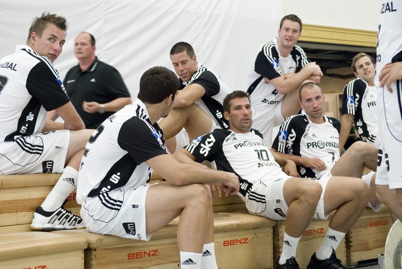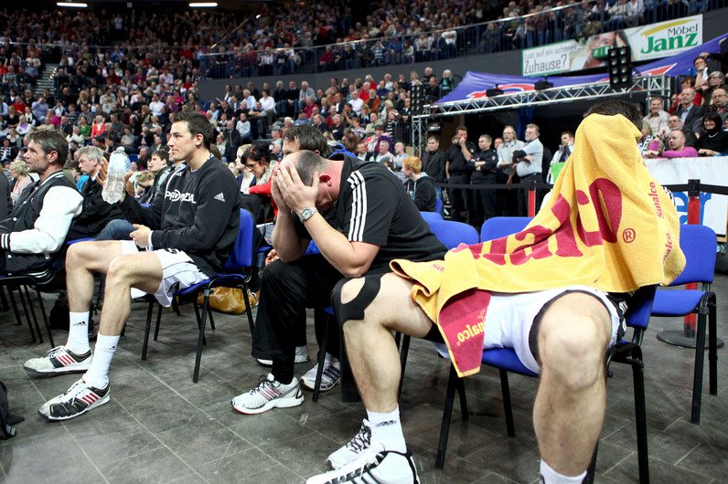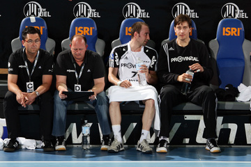 | Wieder ok: Filip Jicha. | Die Kieler Bank. | Das THW-Betreuerteam. | Das THW-Betreuerteam. | |||