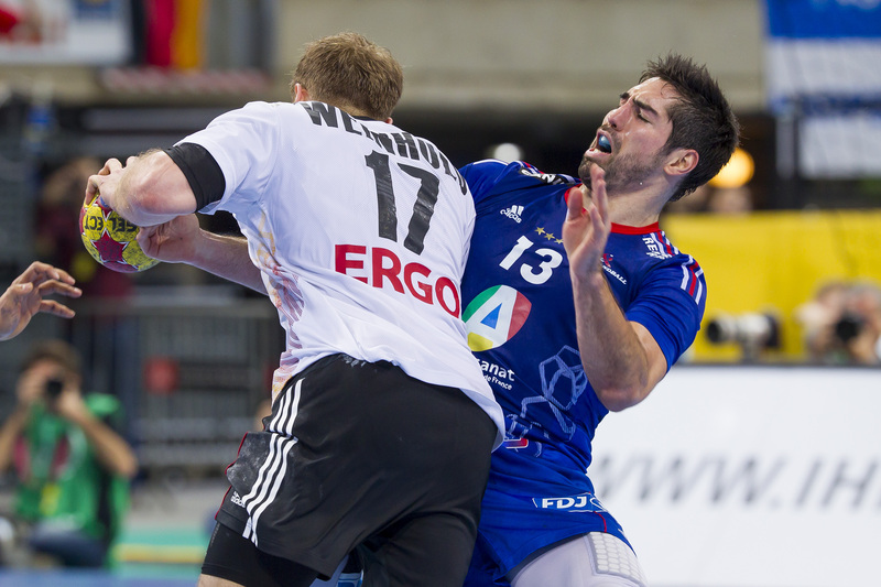| Spielszene. | WM 2013: GER-FRA: Steffen Weinhold gegen Nikola Karabatic. | WM 2013: GER-TUN: Steffen Weinhold. | WM-Vorbereitung in Stuttgart: GER-ROU: Steffen Weinhold. | |||