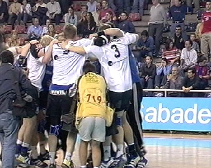 | EHF-Pokal-Finale 2002, Rückspiel: Demetrio Lozano. | EHF-Pokal-Finale 2002, Rückspiel: Christian Scheffler. | EHF-Pokal-Finale 2002, Rückspiel: Masip scheitert an Fritz. | EHF-Pokal-Finale 2002, Rückspiel: Jubel! | |||