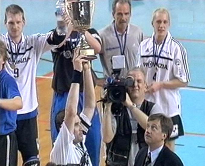 | EHF-Pokal-Finale 2002, Rückspiel: Klaus-Dieter Petersen. | EHF-Pokal-Finale 2002, Rückspiel: Noka Serdarusic mit EHF-Generalsekretär Wiedener. | EHF-Pokal-Finale 2002, Rückspiel: Die THW-Fans. | EHF-Pokal-Finale 2002, Rückspiel: Da ist der Pott! | |||