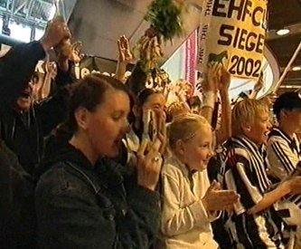 | EHF-Pokal-Finale 2002, Rückspiel: 200 Fans empfingen den THW am Flughafen. | EHF-Pokal-Finale 2002, Rückspiel: Das Objekt der Begierde. | EHF-Pokal-Finale 2002, Rückspiel: Empfang am Vereinsheim. | EHF-Pokal-Finale 2002, Rückspiel: Empfang am Vereinsheim - Lövgren mit Oberbürgermeister Gansel und Provinzial-Vorstandsvorsitzendem Reime. | |||