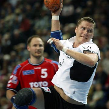 | Uwe Schwenker hatte wenig Grund für Ärger. | Lövgren stoppt Schumann. | Holger Glandorf. | Ian Marko Fog - Dominikovic im Hintergrund. | |||