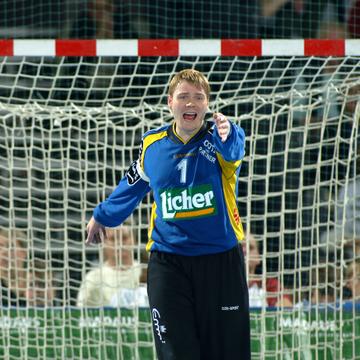 | Nebojsa Golic war mit 11/1 Toren bester Wetzlarer Werfer. | Petersen und Ahlm spielten erneut einen starken Mittelblock. | Petersen stoppt Viktorsson. | Viktorsson. | |||
