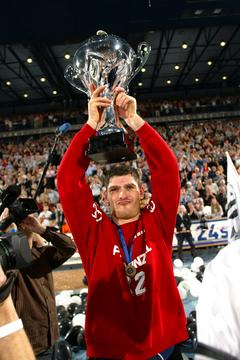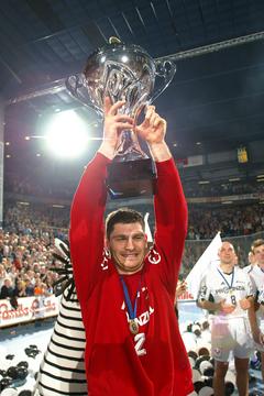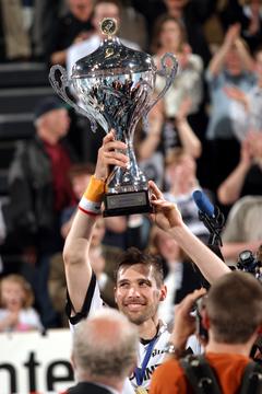 | Kapitän Stefan Lövgren mit dem Pokal. | Henning Fritz mit dem Pokal. | Jubel in der Ostseehalle. | Klaus-Dieter Petersen hat seinen Pott wieder! | |||