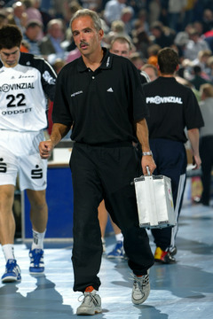 | Stefan Lövgren und Adrian Wagner verlassen nach dem THW Sieg das Spielfeld. | Die Schiedsrichterinnen Jutta Ehrmann und Susanne Künzig. | Mannschaftsarzt Dr. Detlev Brandecker bei der Arbeit. Im Hintergrund ist Nikola Karabatic zu sehen. | ||||