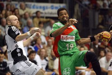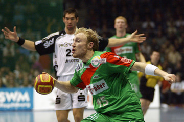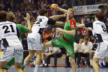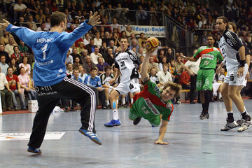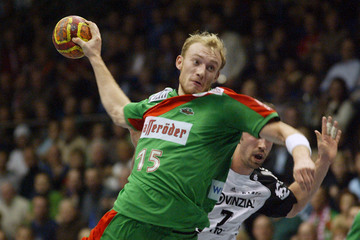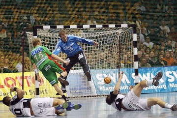 | Abati, links Lundström. | Gregor Tkazcyk, rechts Dominik Klein. | Yves Grafenhorst, im Hintergrund Nikola Karabatic. | Schwenker und Serdarusic. | |||
