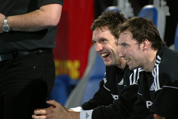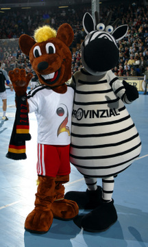 | Nikola war "Spieler des Tages. | Dominik Klein unterstützt die Mukoviszidose-Stiftung. | Dominik Klein unterstützt die Mukoviszidose-Stiftung. | WM-Maskottchen Hannibal und Hein Daddel. | |||