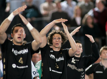 | Letzte Anweisungen von "Noka". | Uwe Schwenker blickt Richtung Champions-League-Pokal. | Die Bank der SG. | Der rot gesperrte Ljubomir Vranjes und sein Coach Kent-Harry Andersson. | |||