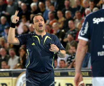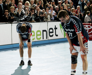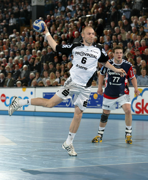 | Henrik Lundström. | Siebenmeter. | Marcin Lijewski muss nach der dritten Zeitstrafe die Halle verlassen. | Stefan Lövgren schaut auf den Spielstand. | |||