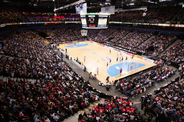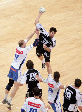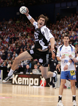| Marcus Ahlm. | Stefan Lövgren am Kreis. | Die Colorline-Arena. | Marcus Ahlm. | |||