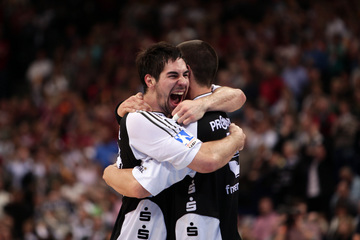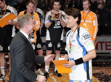 | Der HSV wurde Vize-Pokalsieger. | Abklatschen der Teams. | Der DHB-Pokal. | Enttäuschung beim HSV. | |||
