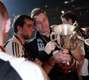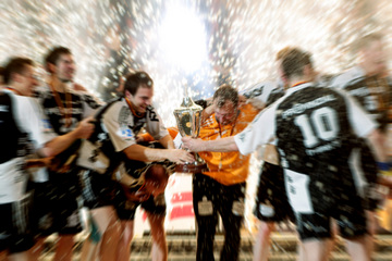 | Jubel über den Titel. | Guck mal, da stehen wir! | Der DHB-Pokal. | Der DHB-Pokal. | |||