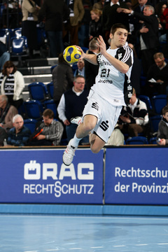 | Spielszene. | Henriksson am Kreis. | Gylfason gegen Omeyer. | Stefan Lövgren. | |||