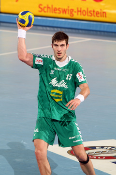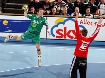| Lövgren und Just. | Michael Hegemann. | Stefan Lövgren beim Strafwurf. | Jan Fiete Buschmann. | |||