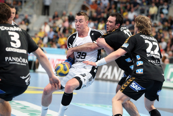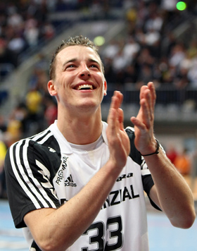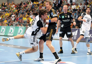 | Oliver Roggisch. | Nikola Karabatic setzt sich durch. | Die Fan-Clubs auf dem Weg nach Mannheim. | Filip Jicha. | |||