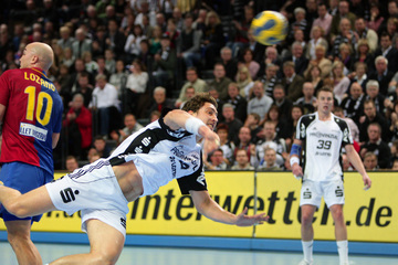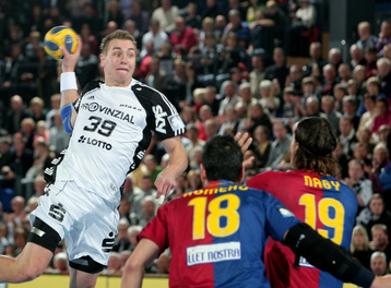 | Nikola Karabatic. | Ruben Garabaya und Nikola Karabatic. | Marcus Ahlm. | Dominik Klein gegen Kasper Hvidt. | |||