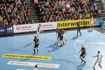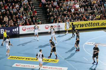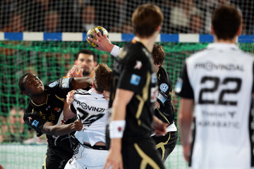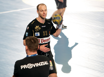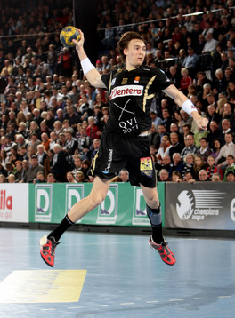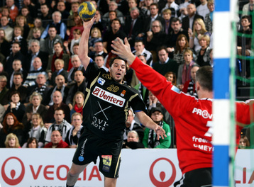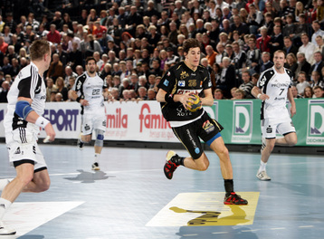 | Nikola Karabatic. | Beeindruckende Kulisse. | Jonas Källman. | Spielszene. | |||