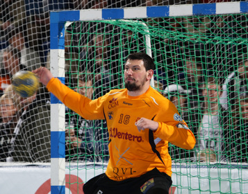 | Olafur Stefansson beim Strafwurf. | Arpad Sterbik. | Warmmachen. | Warmmachen. | |||