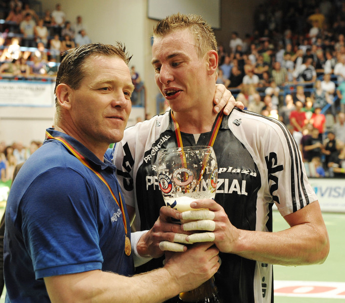| Auch Jubel beim TVG, der den Europacup erreicht hat. | Bayerns Ministerpräsident Horst Seehofer ehrt den Deutscher Meister Dominik Klein. | Deutscher Meister 2010! | Deutscher Meister 2010! | |||